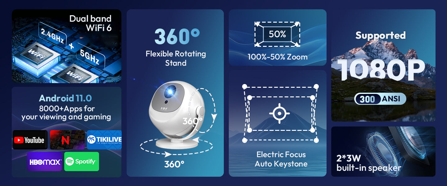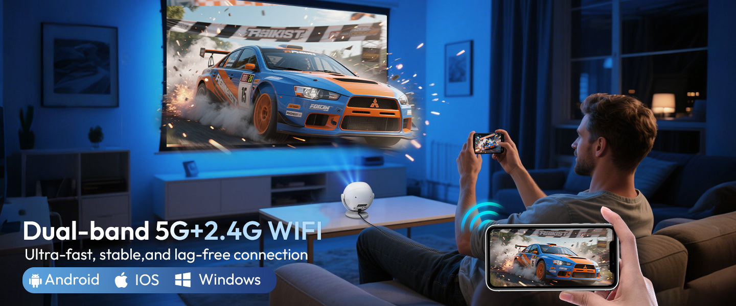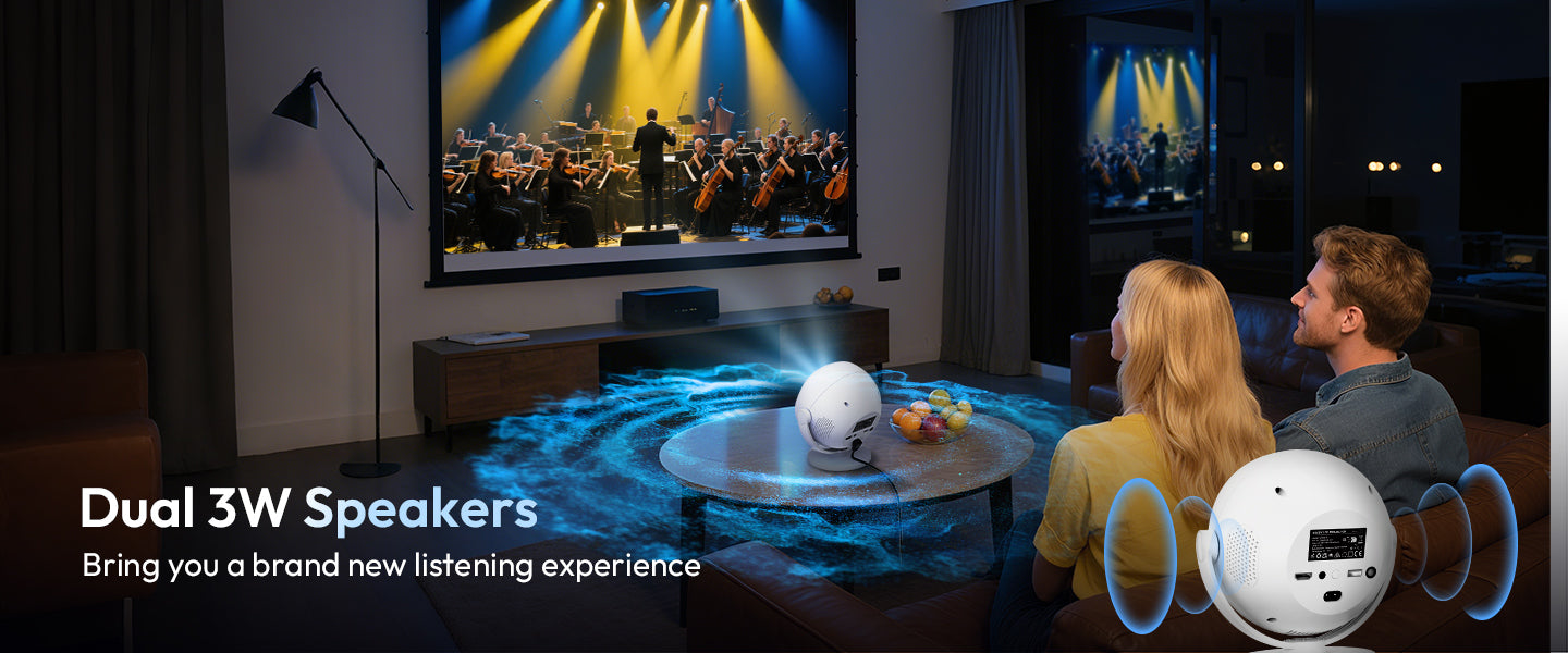 Gimbal A2: Portable Projector Dual Speakers Android 11.0, Native720P, WiFi6 & Bluetooth5.2 Connectivity