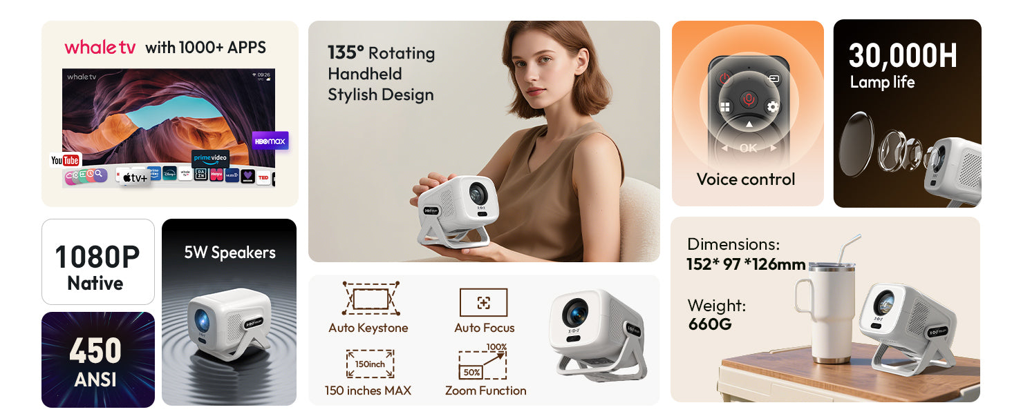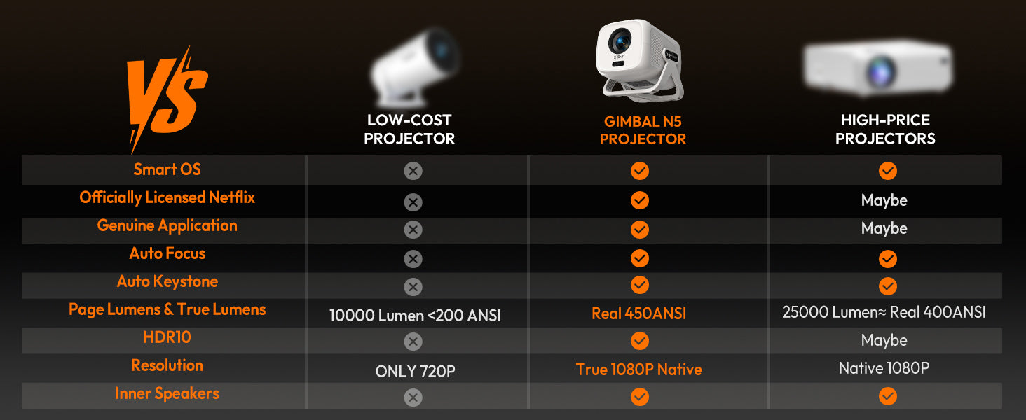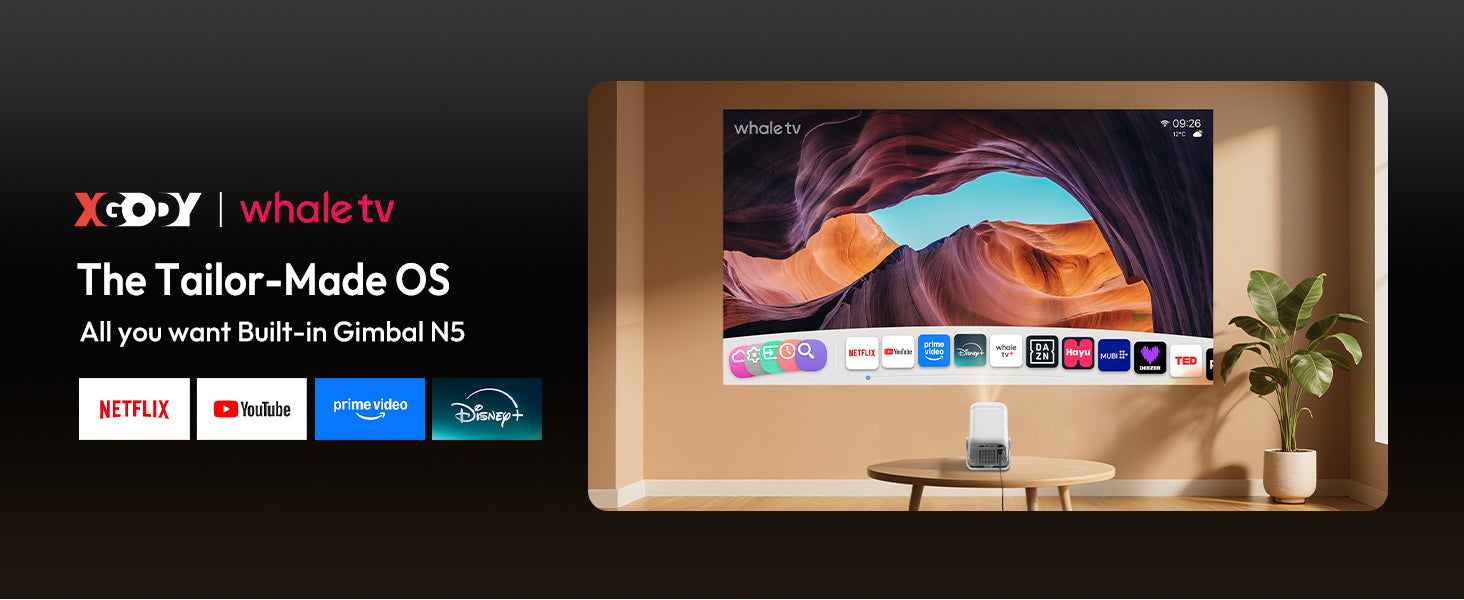 Gimbal N5 Portable Projector Smart OS With Native 1080P WiFi 6 & Bluetooth 5.4 For Home Theater