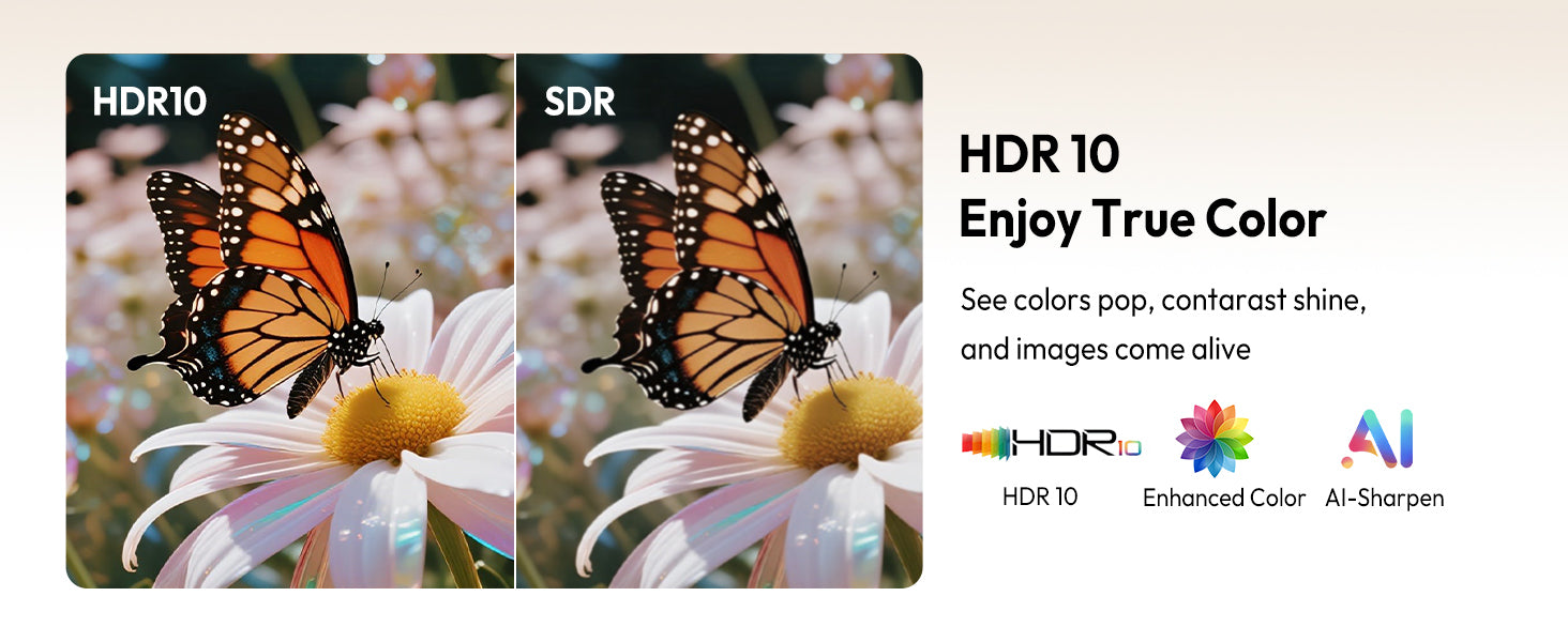 Smart Projector x1, HDMI Cable x1, Power Cable x1, Remote Control x 1(Batteries are not included), Projector User Manual x1