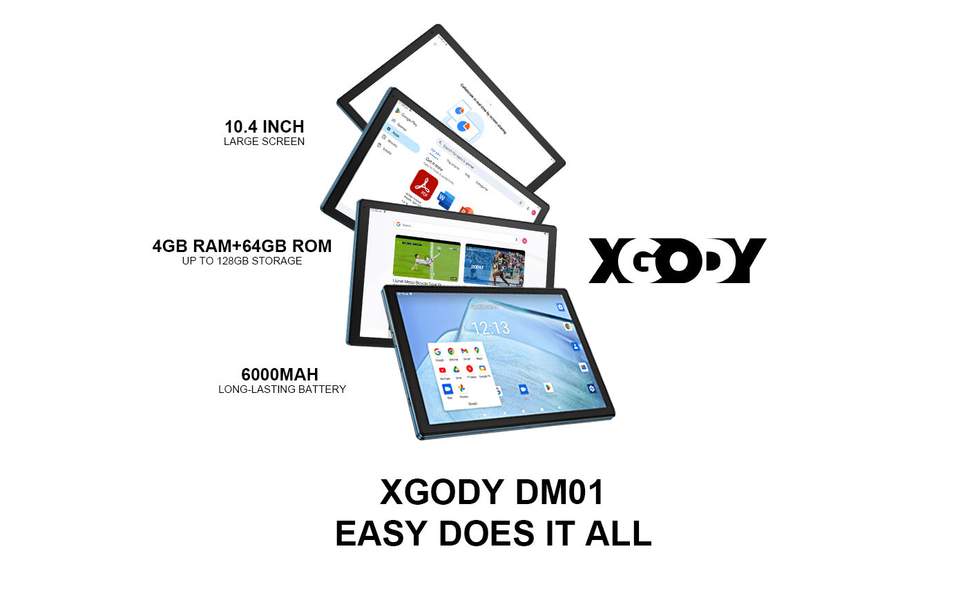 XGODY 10.4 Inch Android Tablet, Freebies-Leather Cases & Keyboards, Light Work, Light Life