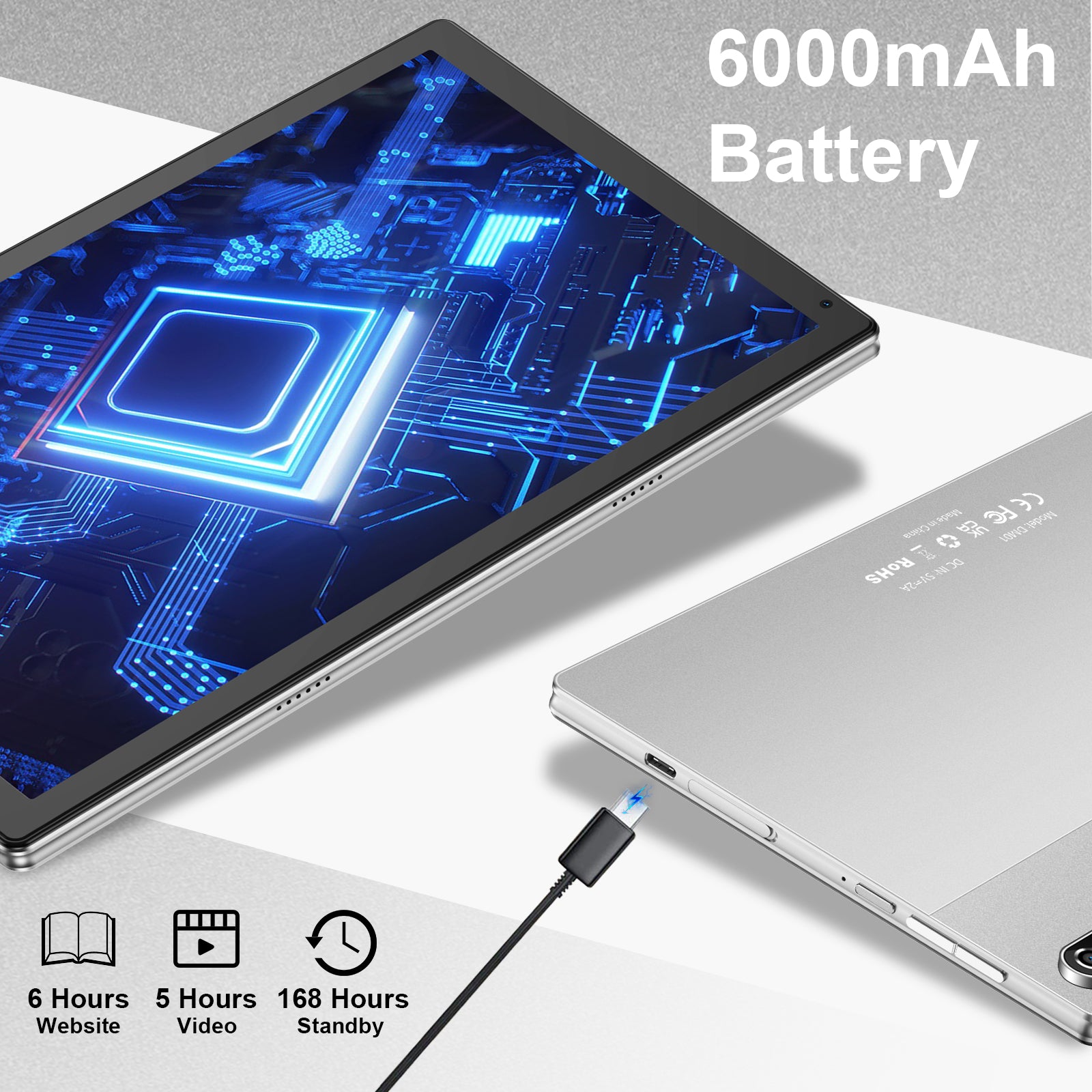 Powerful performance and complete functions: This is a large-screen tablet supported by Android 11 System GMS Certified Tablet, which runs safely and quickly. The 6000mAh Battery can guarantee a day's use, providing convenience for most people who use tablets for work.