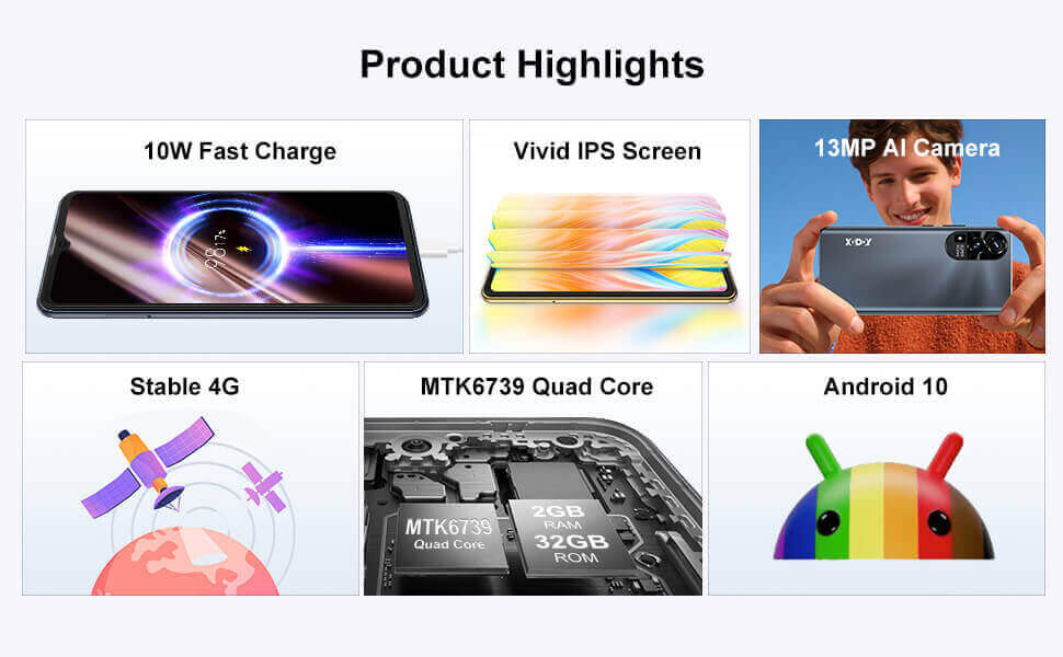 XGODY A53 Cellphone | 6.5" HD Display, Android 10.0, Dual Cameras, Face Unlock
