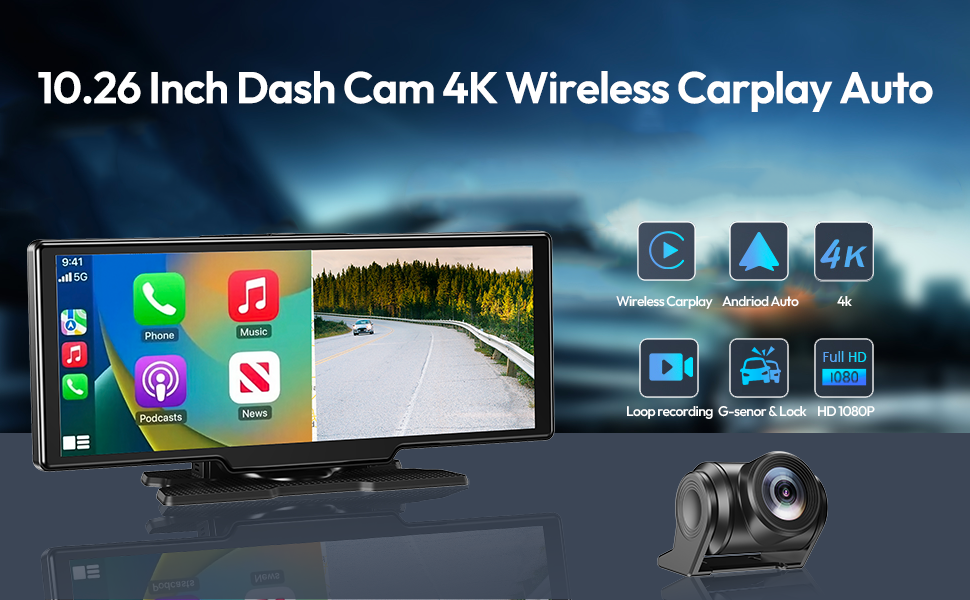 XGODY H30 Dash Cam | 10.26" Screen, 4K Camera, Carplay/Android Auto Support
