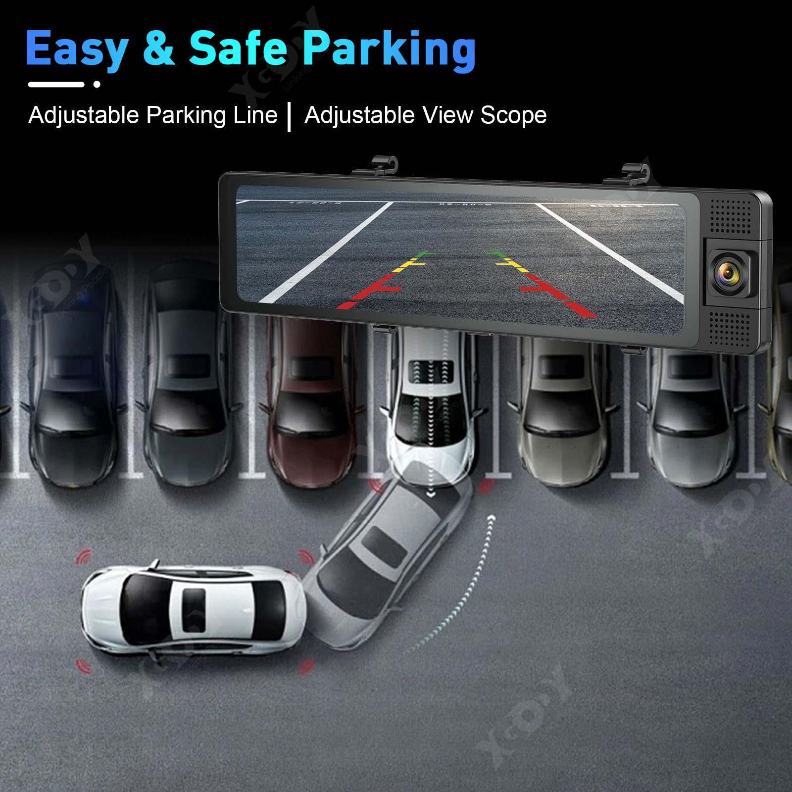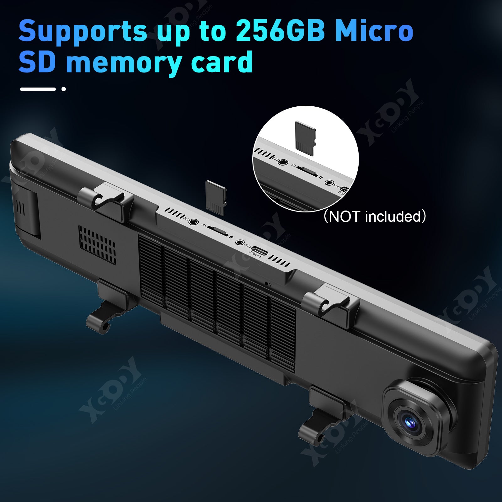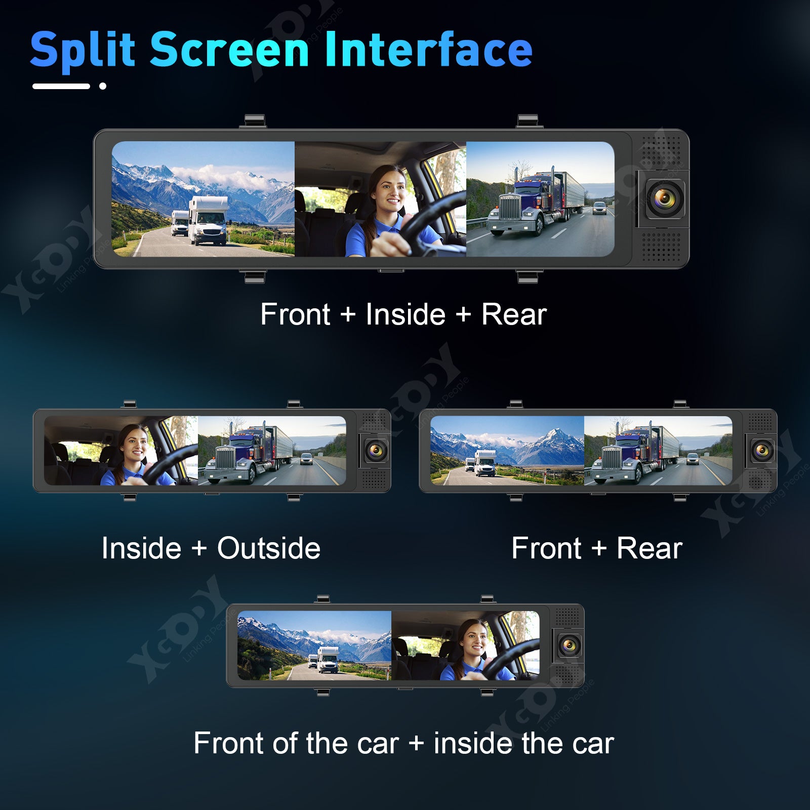 XGODY J406 Triple Channels Dash Cam - 12-Inch Touch Screen, 4K Ultra HD