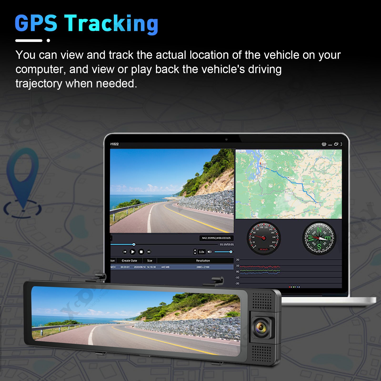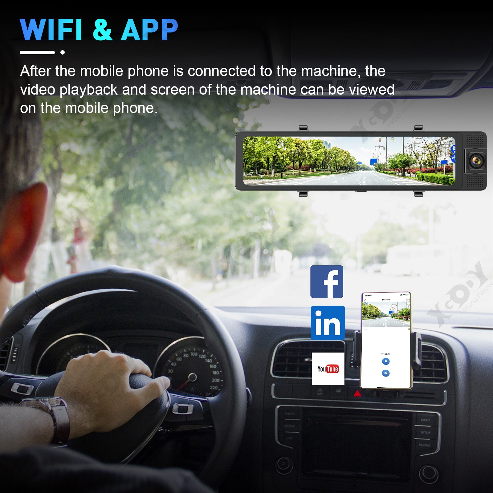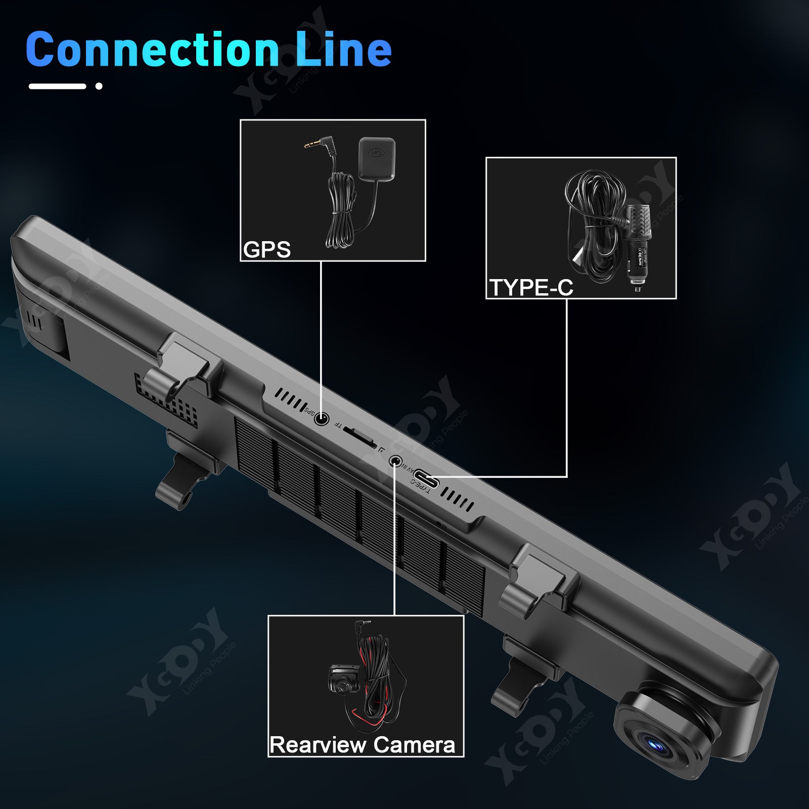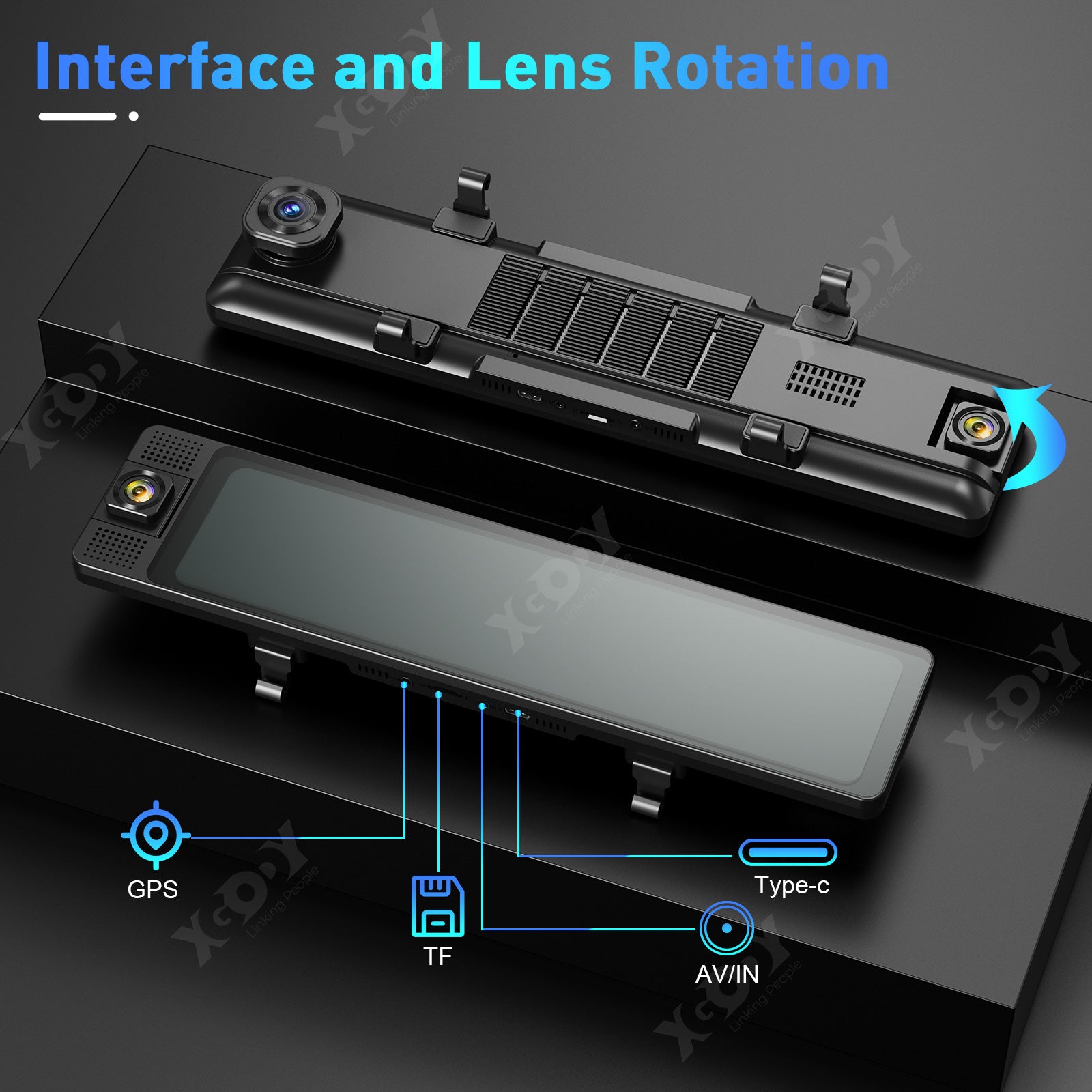 XGODY J406 Triple Channels Dash Cam - 12-Inch Touch Screen, 4K Ultra HD