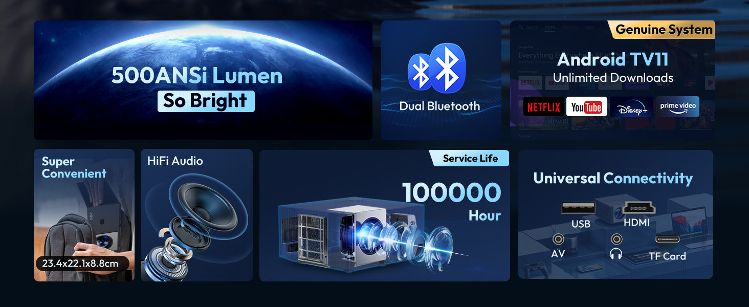 Genuine Android 11.0 Smart Projector for Ultimate Home Entertainment