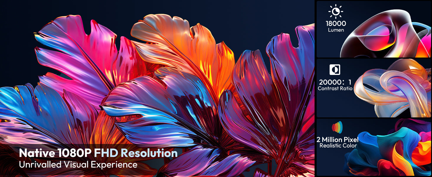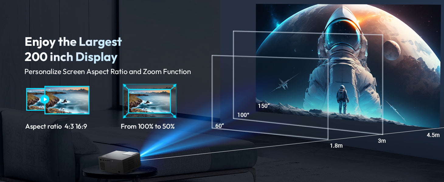 XGODY Sail2 Native 1080p Projector With WiFi And Bluetooth, 200-inch Full HD Large Screen